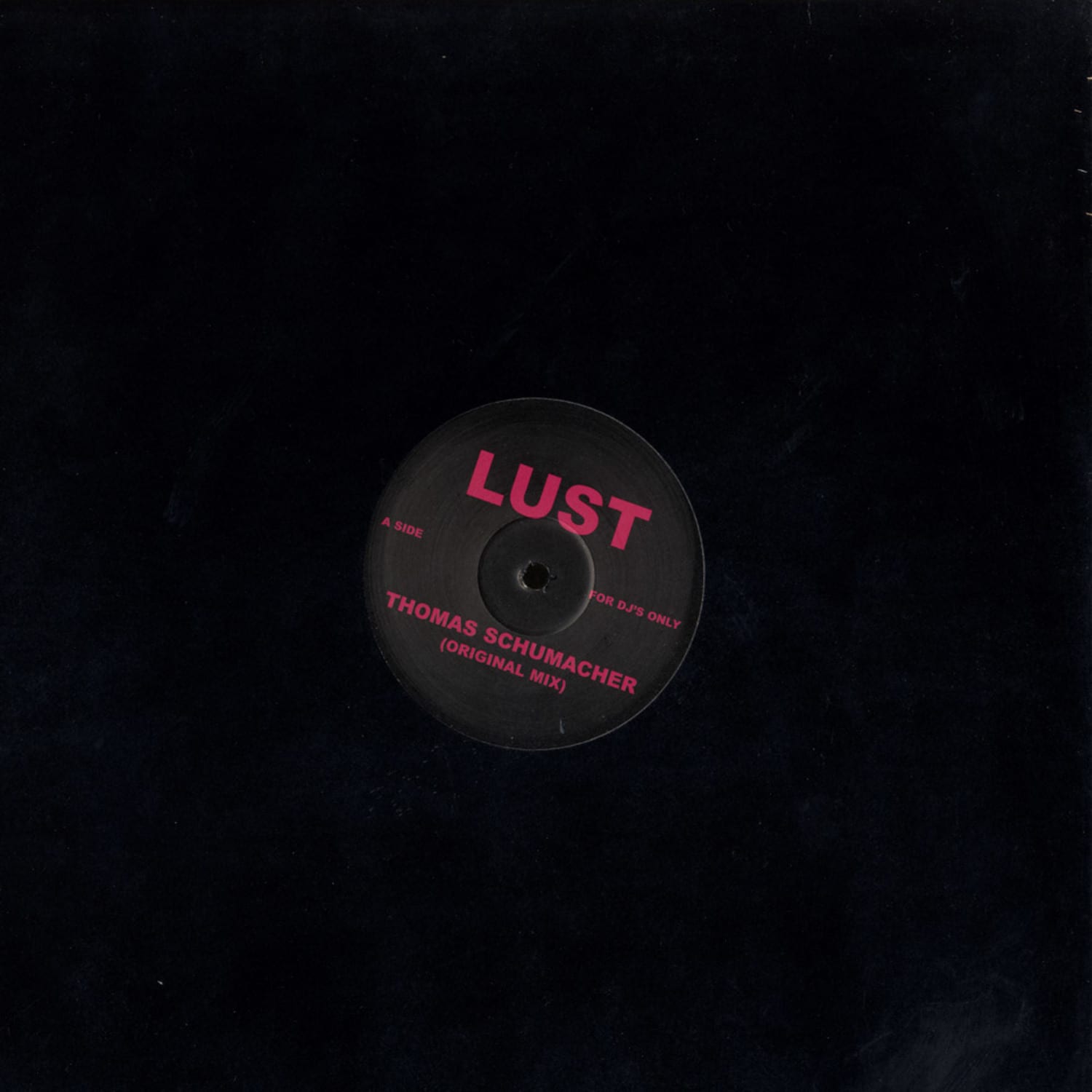 1st time ever on 12inch , the huge Michael Jackson sampling >Lust< which appeared on Thomas album from Bush . Huge filtered tech disco with that massive sample etched the whole way through. Includes the >Base Twelve Mix< the flip.