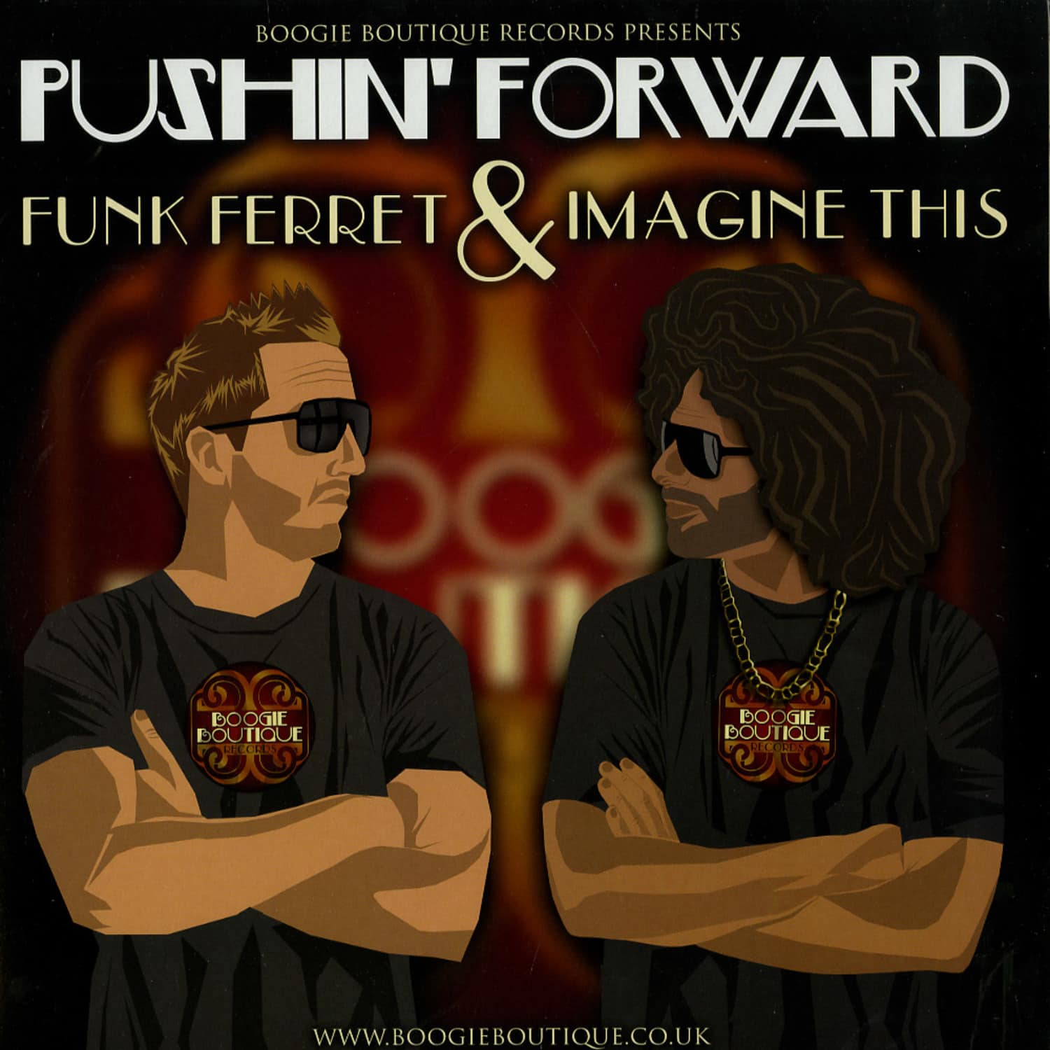 After firmly establishing their Nu Funk steez in the digital realm with countless releases, London label Boogie Boutique reached into the glamorous world of vinyl in fine style just before Christmas with the double 12 inch drop A Year On Wax. They elect to continue their twelve inch shaped adventures with a label regular at the helm in the shape of Funk Ferret. The New Zealander has featured on many a Boogie Boutique release, as well as other Nu Funk labels such as Booty Pirates and Ghetto Funk, so keen observers of the scene will know what to expect. >Pushin Forward< features the mic spitting skills of Imagine This, whose Mr Lif style delivery is the perfect foil for a trademark mid tempo bass heavy bump from the Ferret. Boogie Boutique have assembled a fine cast of remix talent too, with Big Beat veteran Cut La Roc dropping a fine sample heavy revision that allows the vox to shine. Fellow BB artist and Montreal dweller Nick Fonkyson adds some crunchy riffage to the mix, whilst the Funk Ferrets Regrooved Sound System partner DJ Alias concentrates on teasing out some bassline deviancy with some help from Benson.