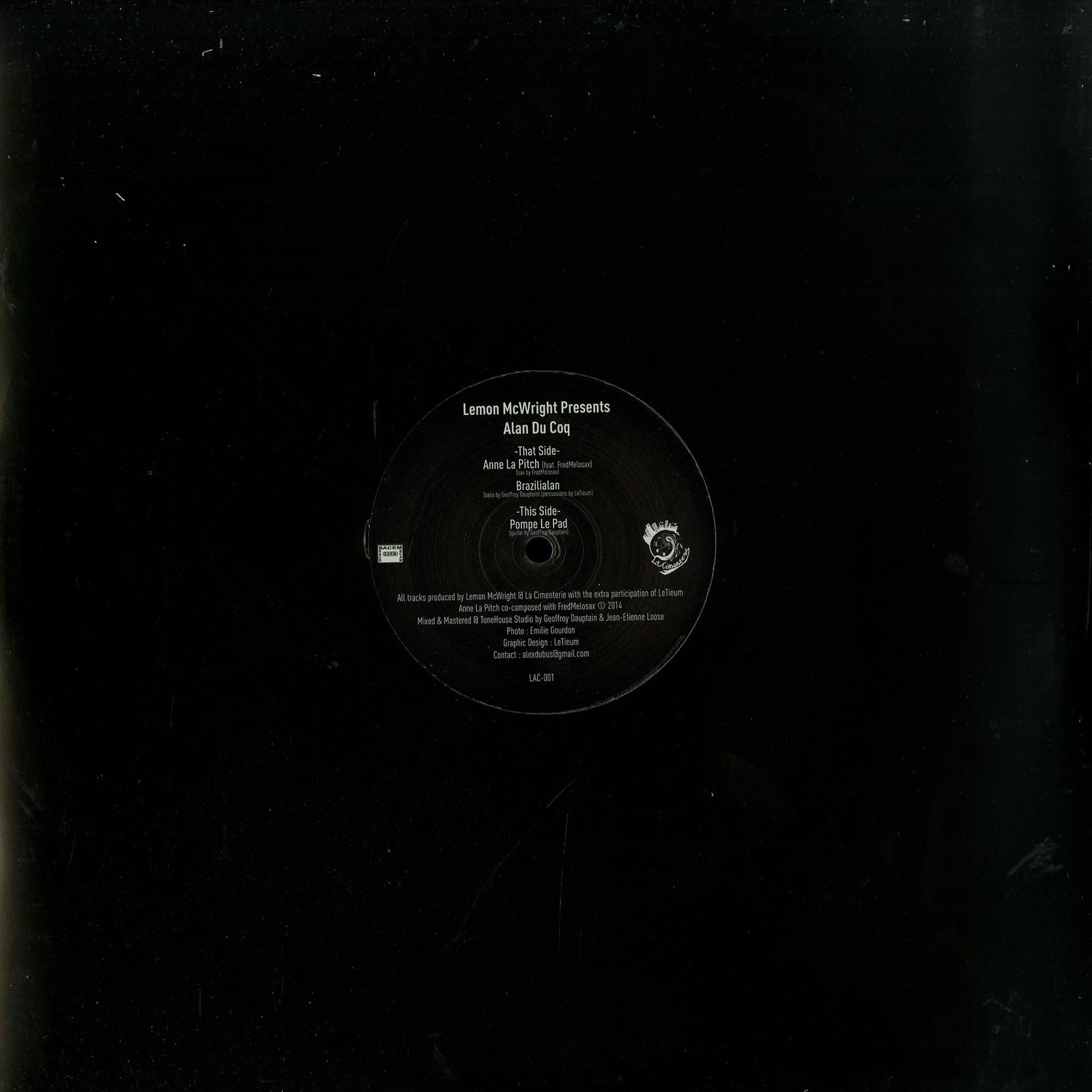 Ltd Edition 100 Units La Cimenterie is very proud to present you its first ep. The Alan Du Coq project is an independent venture led by French producer Lemon McWright. Magical encounters with talented musicians characterize this first release full of groove and good vibes. Anne La Pitch is a funky tune featuring saxophone maestro FredMelosax (long time collaborator of Playin’ 4 The City, DJ Deep) that will definitely get your groove on. Brazilialan is soaked with Brazilian flavours. A sexy and classy bass drives the track accompaLa Cimenterie is very proud to present you its first ep. The Alan Du Coq project is an independent venture led by French producer Lemon McWright. Magical encounters with talented musicians characterize this first release full of groove and good vibes. Anne La Pitch is a funky tune featuring saxophone maestro FredMelosax (long time collaborator of Playin’ 4 The City, DJ Deep) that will definitely get your groove on. Brazilialan is soaked with Brazilian flavours. A sexy and classy bass drives the track accompanied by percussions. A perfect vibe to give your night a live and tropical twist.Finally, Pompe Le Pad is… Pumping, giving you that wild energy you need at 3am to get those booties shaking and bouncing…nied by percussions. A perfect vibe to give your night a live and tropical twist.Finally, Pompe Le Pad is… Pumping, giving you that wild energy you need at 3am to get those booties shaking and bouncing…