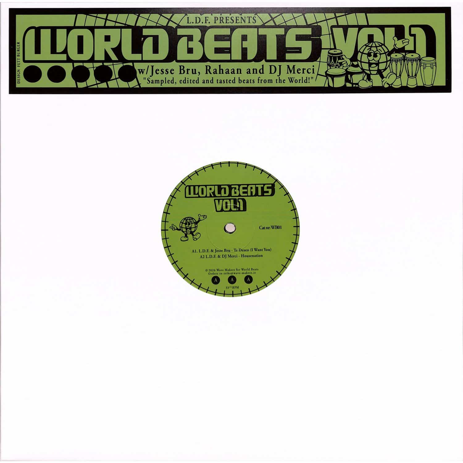 Neapolitan DJ and producer Lello Di Franco, aka L.D.F., presents World Beats — a project driven by the intention to carve out a new, deeper mood on the dancefloor. Rooted in rhythm, raw edits and sampling, the concept draws from forgotten and classic cuts pulled straight from his vinyl collection, reshaped with a contemporary, club-focused approach. This first volume brings together like-minded artists from different corners of the world — Jesse Bru, Chicago edit master Rahaan, and Berlin- based DJ Merci — each contributing their own unique musical perspective while helping define the project's distinctive global sound.[info sheet from distr.]