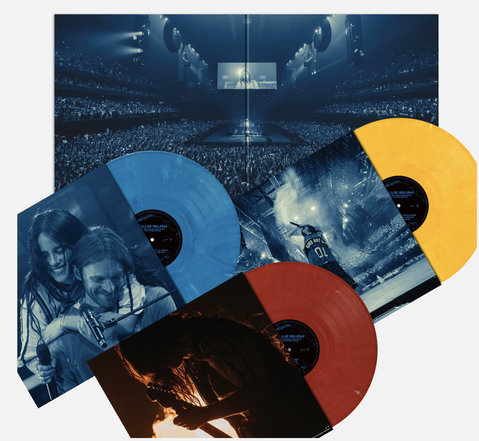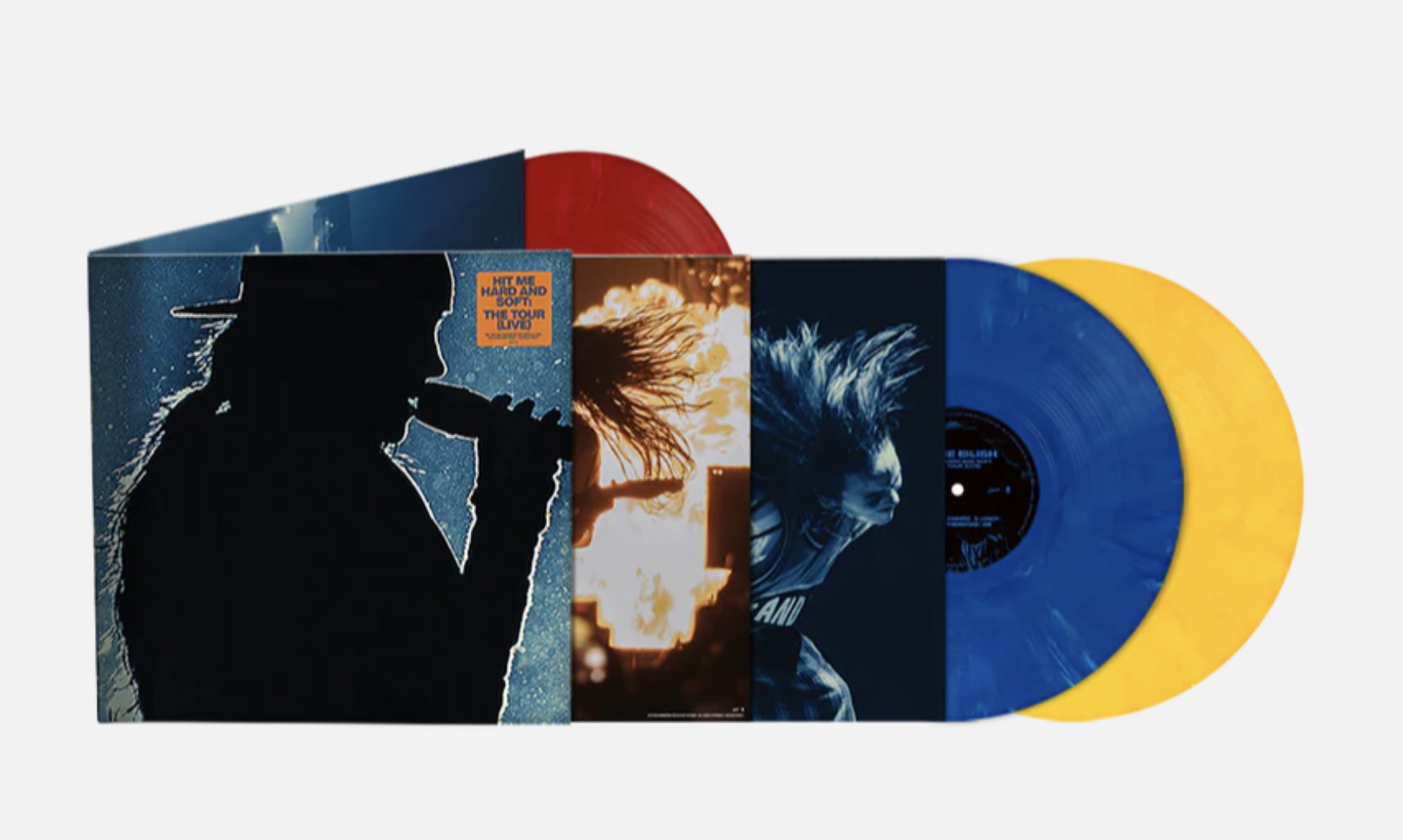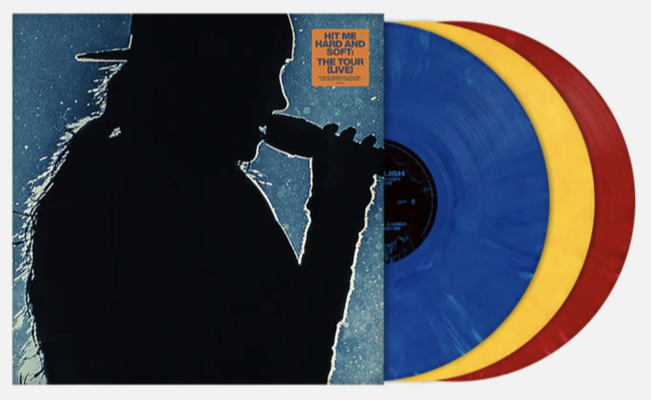 Recorded during her sold-out world tour, HIT ME HARD AND SOFT: THE TOUR (LIVE) is available exclusively as a one-time pressing on 100% recycled vinyl, uniquely colored with a lenticular insert.