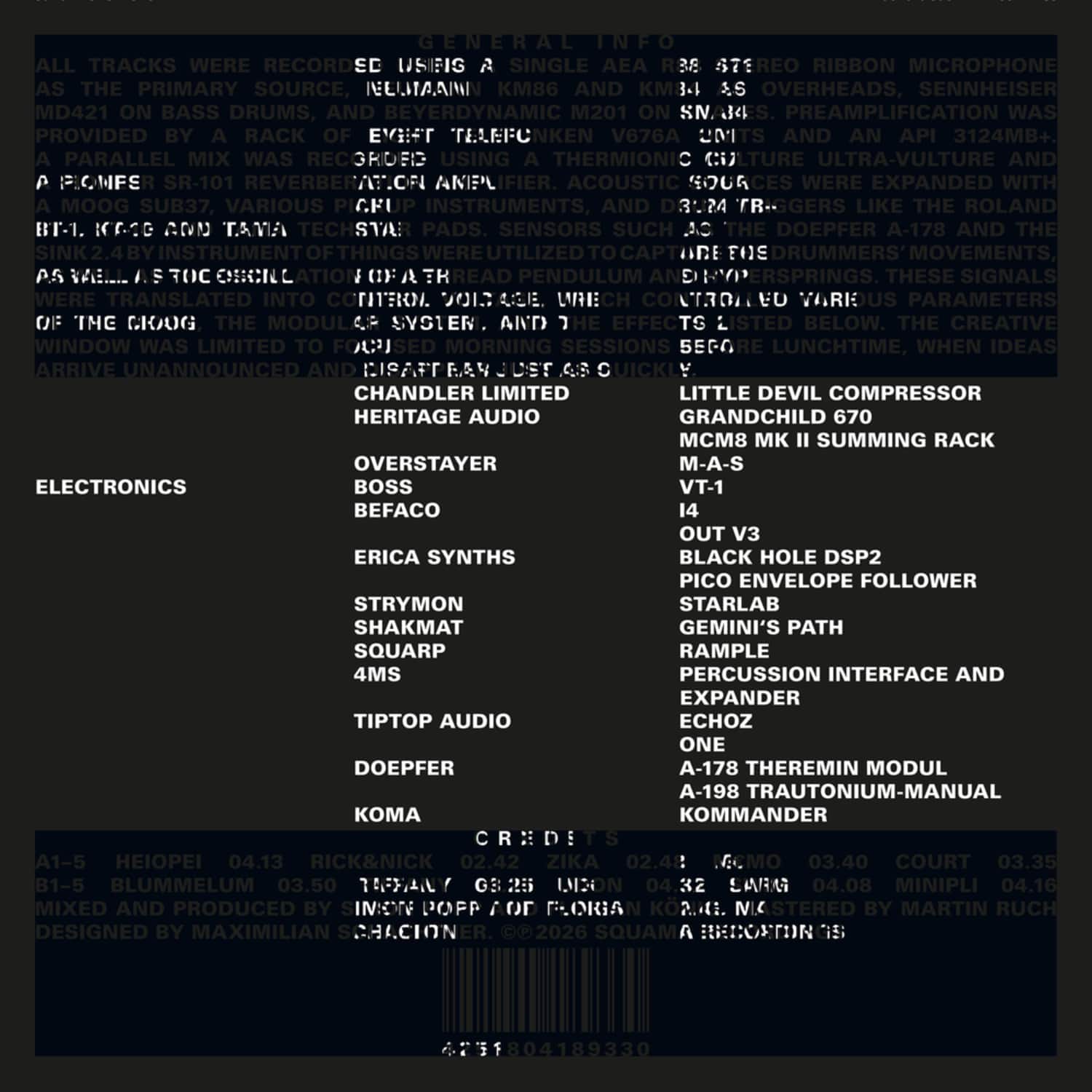 "We didn't think about the live aspect at all this time." So for every session they would choose from a wide array of instruments and machines, an abundance that has inspired the record's artwork, overflowing with words from the list of gear used on the record.