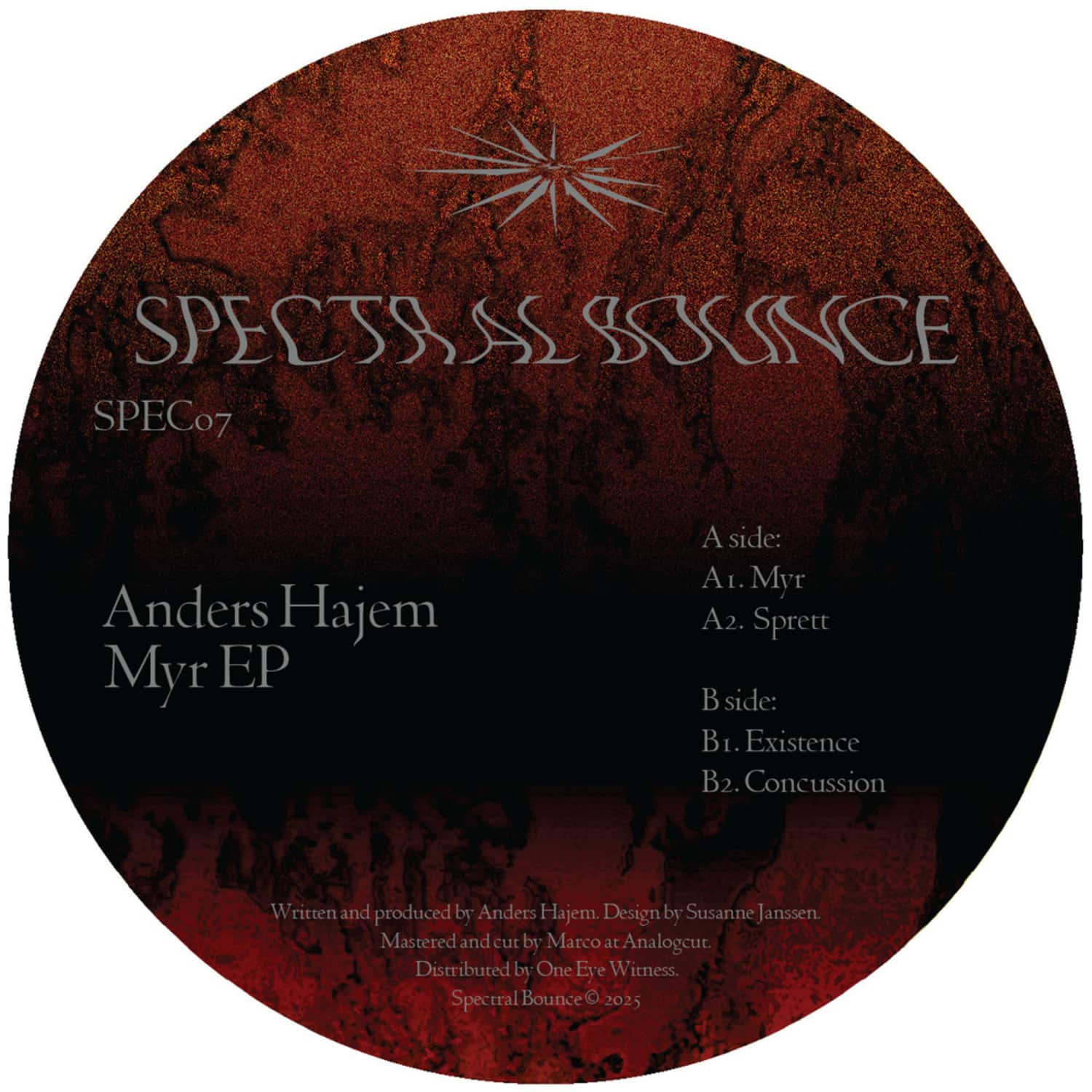 SPEC07 — the Myr EP — is a much more focused affair, finding Hajem in techno mode across 4 potent cuts typified by undulating drums and swelling echoes. Despite its emphasis on percussion, atmosphere has not been sacrificed for rhythm: vivid FX and meticulous attention to detail bring these tracks to life beyond the context of the dancefloor. This is music that can be stepped into and explored, productions that reward repeat listens.