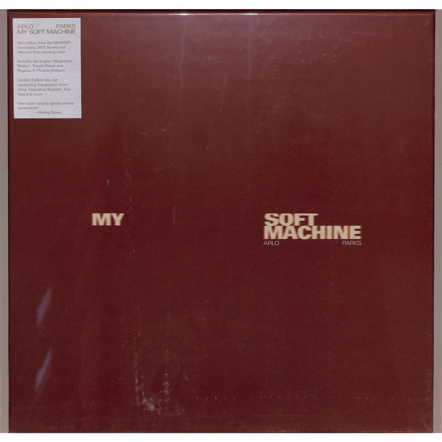 Deluxe big box release containing the album on transparent violet vinyl, a friendship bracelet, tote bag and more