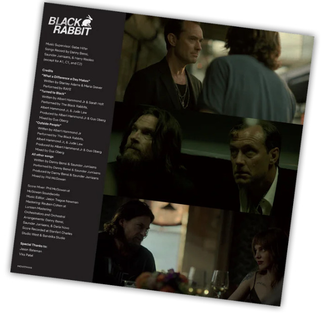Black Rabbit is a music-fuelled series featuring a brand new song of RAYE and two songs by The Black Rabbits (Albert Hammond Jr and Jude Law). Also with the exciting score of Danny Bensi and Saunder Jurriaans a vinyl release is an absolute necessity for the this soundtrack.[info sheet from distr.]