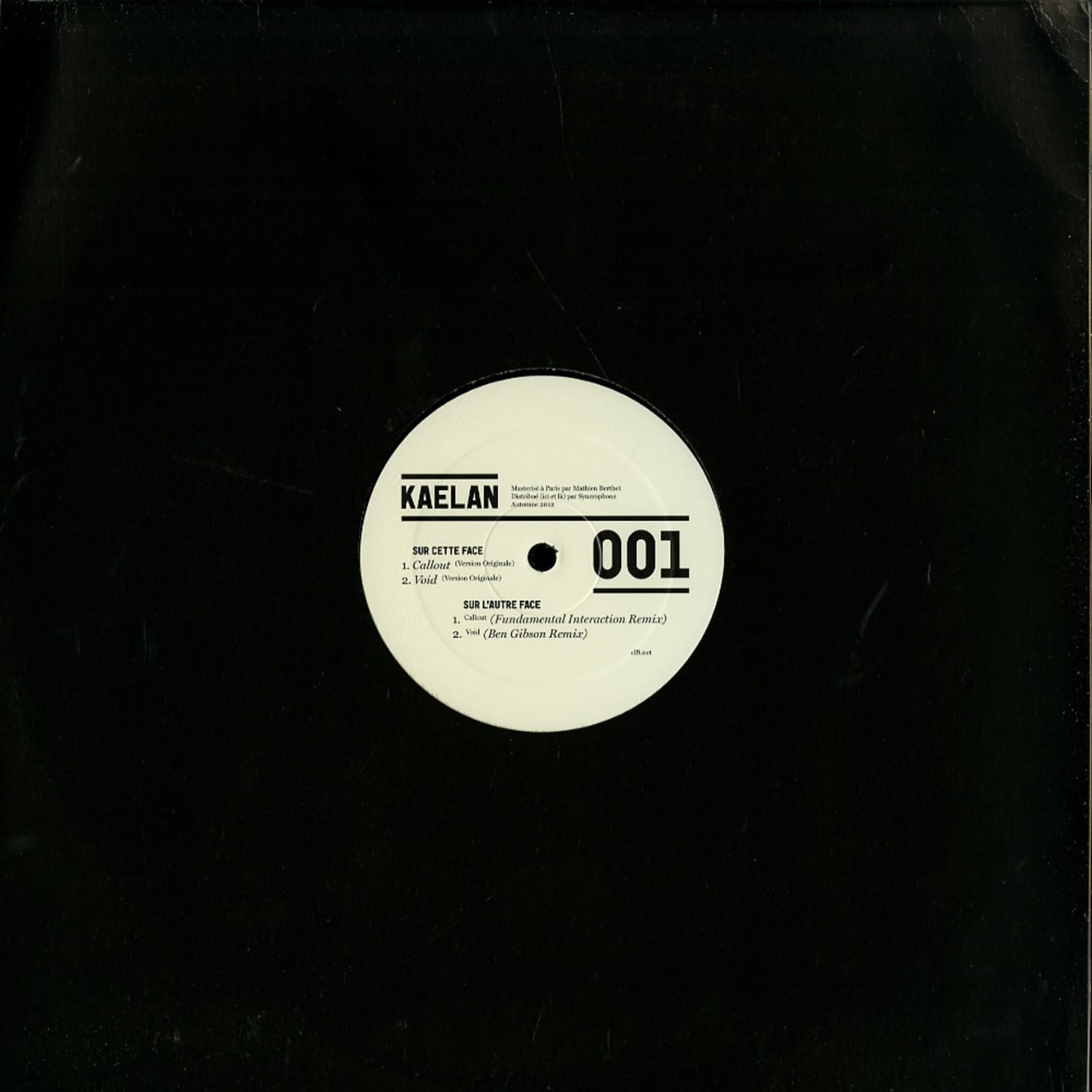 CLFT is taking another step into the techno scene, releasing the first record of its own label. A techno imprint as versatile as the french webzine, with a Basic Channel touch that will feed every mans complex musical attractions. Italian producer Kaelan impulses the labels debut with Callout and Void, two clean dubby tracks showing the producers ability in composing opaque and obsessive atmospheres. Londoner Fundamental Interaction exploits A1s moody gesture while Ben Gibsons first ever remix takes on a progressive and groovier approach of A2. With the sympathies of: Aubrey, Albert van Abbe, Abdullah Rashim, AnD, Miles Sergé, Eric Cloutier, Lenny Posso, Unbalance, Jeroen Search, Anthony Shake Shakir..